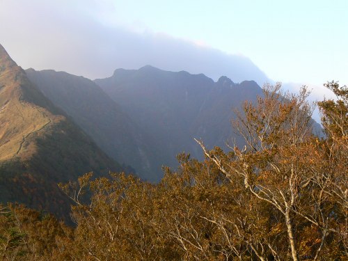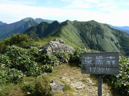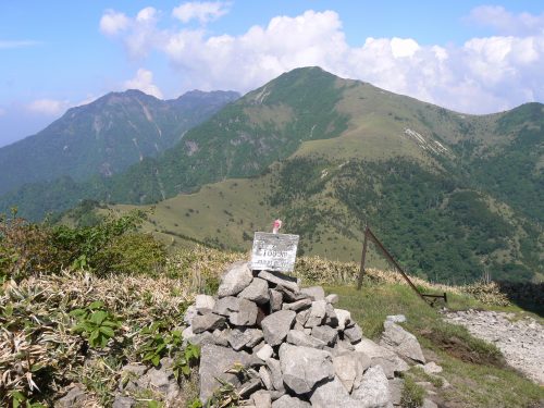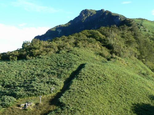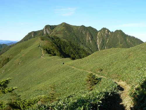 | 西赤石山登山道にて | ツナクリ山と西山(西赤石山登山道から撮影) |