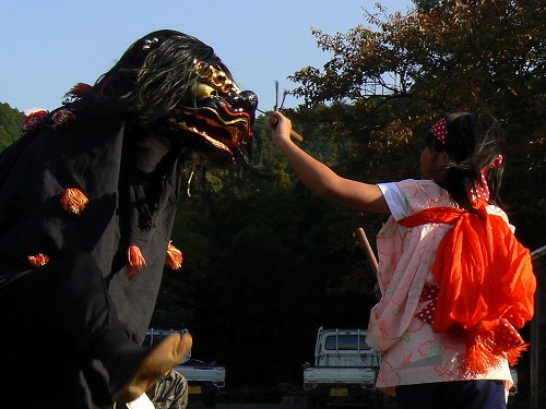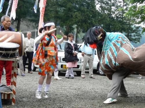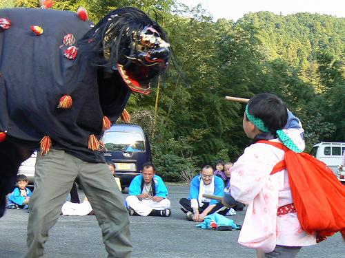 | 荒川の獅子舞(西条山のまつりにて) | 大保木東宮神社の獅子舞(西条山のまつりにて) |