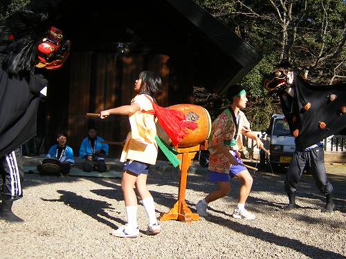 | 荒川の獅子舞(荒川八幡神社にて) | 荒川の獅子舞(伊曽乃神社にて) |