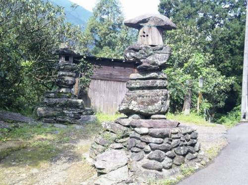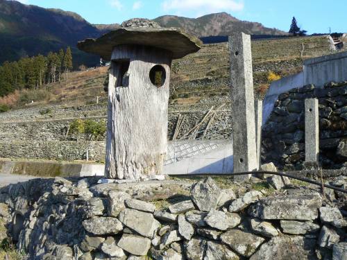 | 下津池・風透の棚田 | 千町集落の木製の灯篭 |