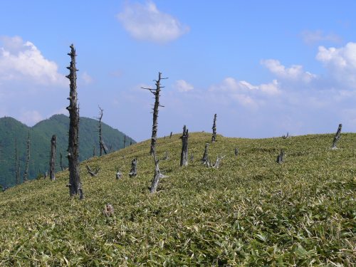 | 堂が森山頂 | 堂が森山頂付近の白骨林 |