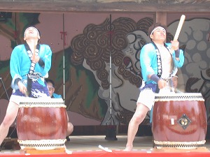 この日は、あいにくの雨で演奏が可能かどうか微妙でしたが、直前に雨もあがり思いっきり太鼓をたたくことができました。