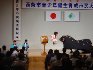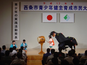 他にも、神拝保育園児の演奏、空手、親子による詩吟、少林寺拳法、ひうち太鼓、西条北中学校吹奏楽部などが登場しました。