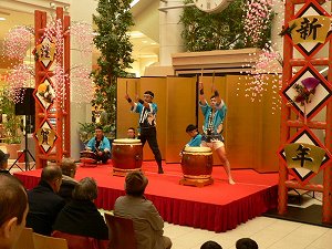 元旦ということもあってたくさんの買い物客でにぎわうイオン新居浜ショッピングセンターのセントラルコートでの演奏でした。