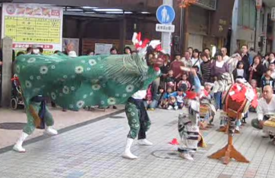 そして、獅子の動きが激しいこと、太鼓のたたき手に突進してくる獅子を追い払う様子などよく似ています。