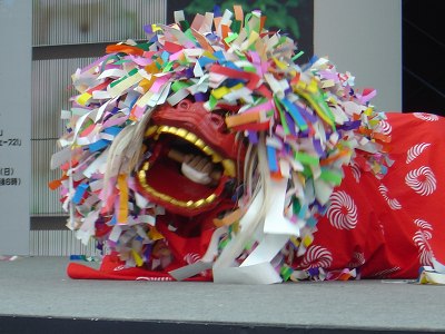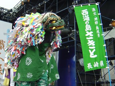 長崎県西海市崎戸町 崎戸獅子舞実演 愛知県名古屋市栄 オアシス21銀河の広場にて 平成17年9月4日 |