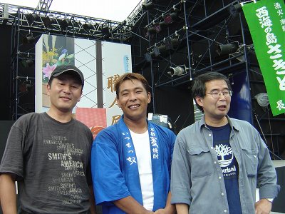 | 平成13年長崎県崎戸町在住のSさんからいただいたメールがすべての始まりだった。 「荒川の獅子舞の太鼓のリズムが崎戸の獅子舞とそっくりだ」突然のメールに正直おどろいた。 それから4年がたち今度は崎戸町出身で東京在住のワキさんから、「荒川の獅子舞の動画を見て、昔太鼓をたたいていたリズムが蘇った」というメール。 崎戸の獅子舞のルーツは四国にあるという。Sさんからメールをいただいてから「崎戸獅子舞」について興味を持ち、一度その実演を見てみたいという思いがつのっていったが、なかなか実現できないでいた。 ところが、今年の8月ワキさんから愛知県にて崎戸獅子舞の実演があるという連絡をいただいた。 思いがけず名古屋行きが実現した。獅子舞の「なぶりこ」をしている娘と一緒に名古屋に向けて出発した。 9月2日(金)西条を船で出発。翌日は終日大阪で過ごし(家族サービス)大阪泊。 9月4日(日)大阪から午前9時30分の新幹線で名古屋に向けて出発した。 10時23分に名古屋駅に到着。地下鉄に乗り換え栄駅に到着。 駅を出たところは、もうオアシス21の銀河の広場につながっていた。 そこでワキさんと崎戸町「さざんか会」会長のAさんにお会いした。 ワキさんは、昔中学生のときに崎戸で獅子舞をされていたそうで昔の崎戸の様子をお伺いすることができた。 さざんか会のAさんからは崎戸のお祭りのこと、獅子舞のことを色々と教えていただいた。 その後、りっちゃんさん、崎戸町友の会の山口さん、鉄さん、シェフさんなどたくさんの崎戸出身のかたとお会いすることができた。 →崎戸獅子舞については、こちらをご覧下さい。 →「荒川の獅子舞」と「崎戸獅子舞」を比べてみました。興味のあるかたはこちらへどうぞ。 |