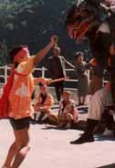 ☆昭和50年〜62年加茂青年団が中心となり、積極的に「なぶりこ」の育成を行いました。各種イベント等にも多数出演し、「荒川の獅子舞」の知名度もあがってきました。 衣装も再度新調し、短パンが主流となりました。 |