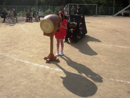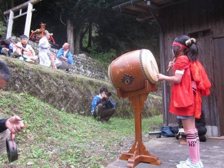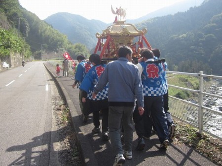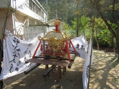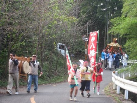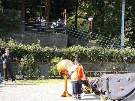 | 5年生になったR君の演技 | 左上の神輿があるところが、東宮神社 |