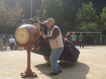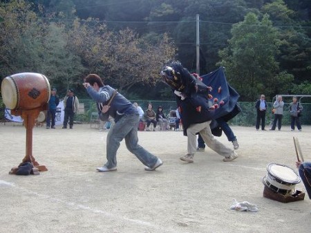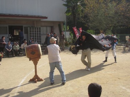| ベテランのR君の演技 | 獅子舞が終了して、今年も無事お祭りが終了した。 |
