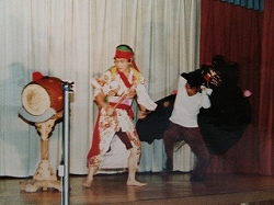 | 明見(みょうけん)神社の秋のお祭りに、 各家々を回って悪魔払いをつとめ、家内安全、 五穀豊穣を祈念いたします。 大正の初期の頃、八幡神社になぞらえて獅子頭を購入し、 舞い方は荒川下分の方から教わったと聞いております。 大正の頃は、八幡神社の氏子の子弟も明見神社の氏子の子弟も、 同じ加茂村立荒川小学校に通っていました。 秋祭りの頃となると、子供たちの話題は獅子舞の自慢話だったそうです。 |