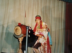 「八之川の獅子舞」は、荒川から伝わりましたが、荒川と 比べると、かなりリズムが早く、太鼓のたたき方も一部違っています。 獅子の舞い方にしても、さかんに獅子頭を回し、目まぐるしく 動き回り、地をはうように舞います。 昔は小学生が「なぶりこ」をつとめていたのですが、後継者が育たず、 昭和50年代の後半からは、かつての「小学生」が「なぶりこ」をつとめていました。