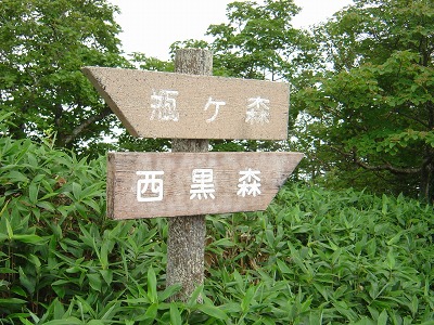| ゆっくりと30分ほど歩くと、西黒森山頂への道の分岐に来た。ここから山頂に向かって登る。かなりきつそうだ。 |
