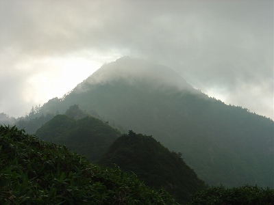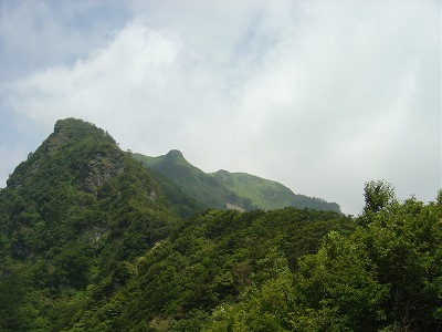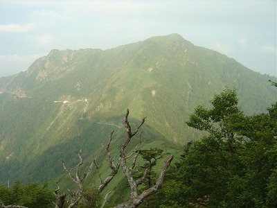 | 登山道から見た瓶ヶ森。すこし日差しがさしてきた。 |