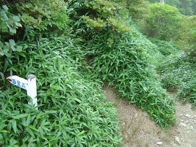 木製の階段を登ったところにある標識。ここからは瓶ヶ森へも登れるらしい。 |