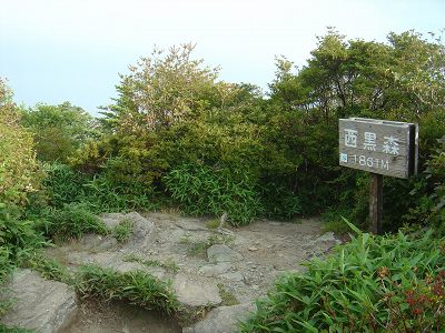 同じ場所から見た西黒森。頂上付近はまだガスがかかっている。 |
