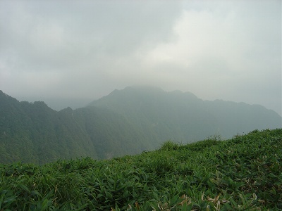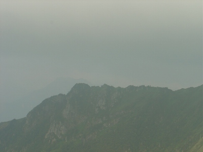歩き始めて40分程で山頂に到着。山頂付近のガスはなくなり、まずまずの眺めだ。 |
