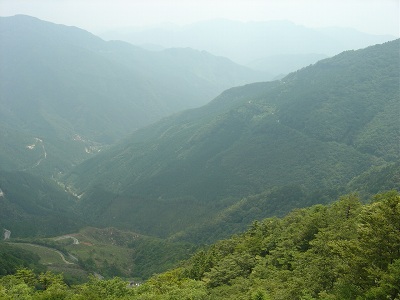 登山道から見下ろした高知県側。高知の山が延々と続いていた。 |