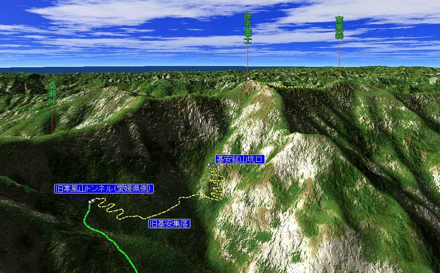 自宅発(4:00)→伊予富士登山口(5:27)→伊予富士山頂(6:10〜6:57)→登山口(7:26)→旧寒風山トンネル愛媛県側(8:00)→基安集落跡(8:13)→基安鉱山坑口付近散策(9:20〜10:40)〜基安集落(11:30)〜旧寒風山トンネル(12:15) |