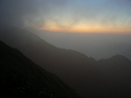 | 午前5時27分、登山口を出発。目指すは山頂での日の出。あたりはまだ薄暗い。 |