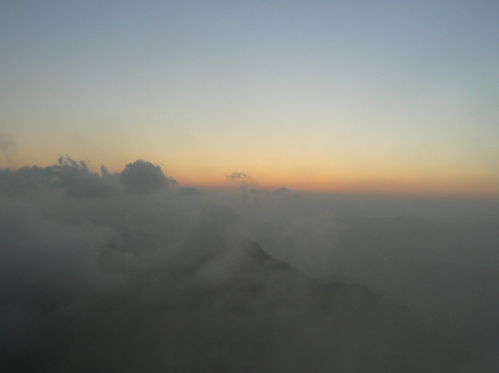 | 伊予富士山頂が見えたり、隠れたり。これは・・・日の出を見ることはできるのだろうか。 |