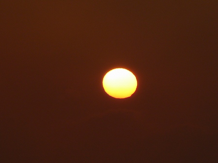 午前6時20分、真っ赤な太陽が雲の中から昇ってきた。これはすばらしい眺め。 |