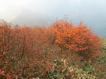 | だいぶ登ってきた。正面には寒風山が見えてきた。またガスがかかってきている。 |