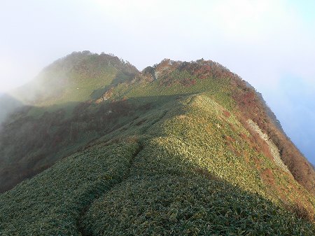 | 朝日があったってとっても快適な登山道。名残惜しいが次に行くところがあるので・・。 |