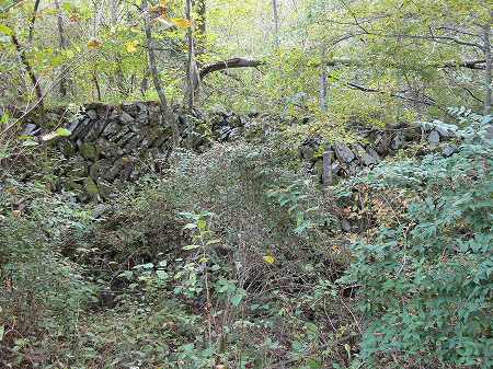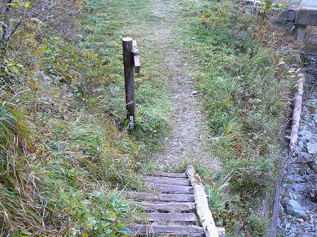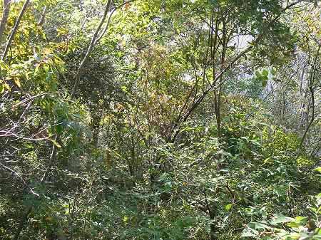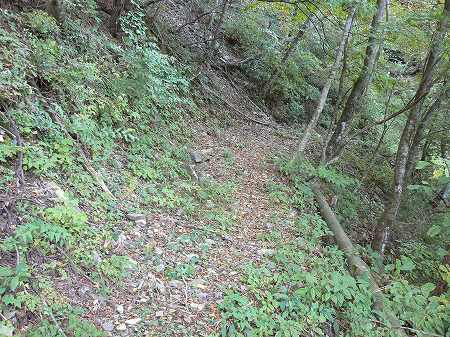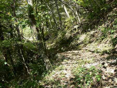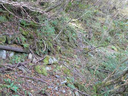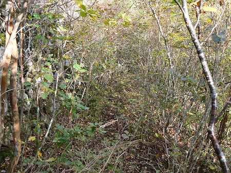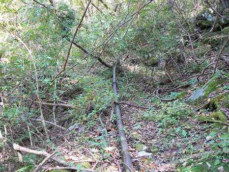 | ここから基安集落跡に向かって道を下る。夏は草でぼ〜ぼ〜だったが、思ったほど草は茂っていなかった。 |