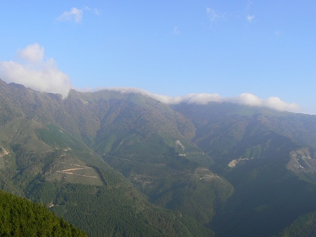 | 下るにしたがって天気がよくなってきた。今あの上にいれば・・・と思っても後の祭り。 |