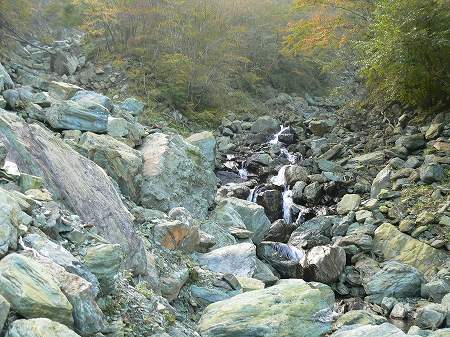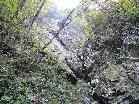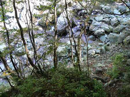 | 引き返し、とりあえず下に進めばいいや、ということでどんどん下る。偶然桂谷の登ってきたところに到着。よかった、よかった。 |