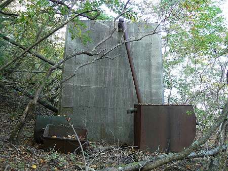これは飲料水のタンクらしい。鉄のパイプが集落まで続いていた。 |