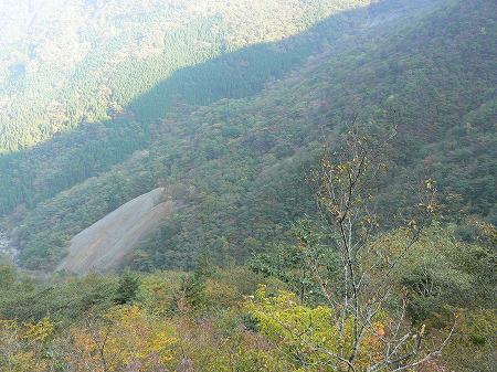 | 来たことのないところまでやってきた。見上げると岩が露出している。なかなかの眺め。 |