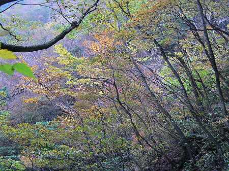 | 伊予富士の東側に紅葉のきれいな場所がある。太陽は隠れているので、そこまで下りてみることにした。 |