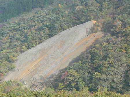 基安鉱山の大きなズリ跡が見えた。35年前までここに集落が広がっていたとは想像もできない。(マウスポインタをあててみて下さい。) |
